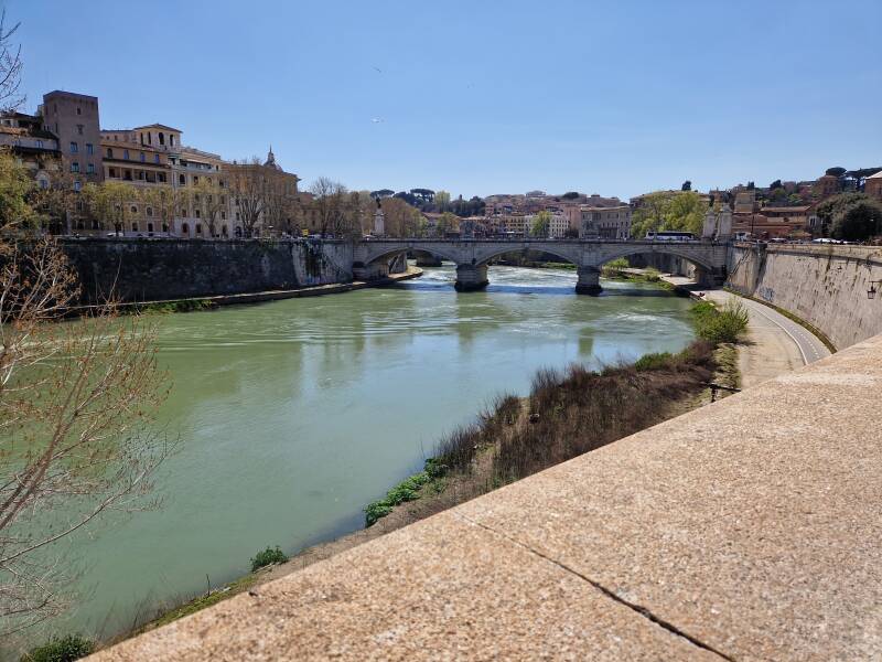 Tijdens deze middagwandeling lopen we onder andere langs Castel Sant’Angelo (Engelenburcht). Dit kasteel werd in de tweede eeuw gebouwd. Het werd daarna een aantal keer geplunderd en in de 18e eeuw werd het kasteel via een tunner verbonden met het Vaticaan om alle schatten veilig te kunnen stellen bij aanvallen op het Vaticaan. Via de aangelegen Ponte Sant’ Angelo (Engelenburg) steken we de Tiber over en wandelen we weer verder. Detail van deze brug: De engelen op deze brug dragen voorwerpen die in het teken staan van de lijdensweg van Jezus. Dus ook hier is het geloof vol op aanwezig en dat merk je wederom aan de drukte deze dagen. Wanneer we de Tiber zijn overgestoken, wandelen we verder richting Piazza Navona.