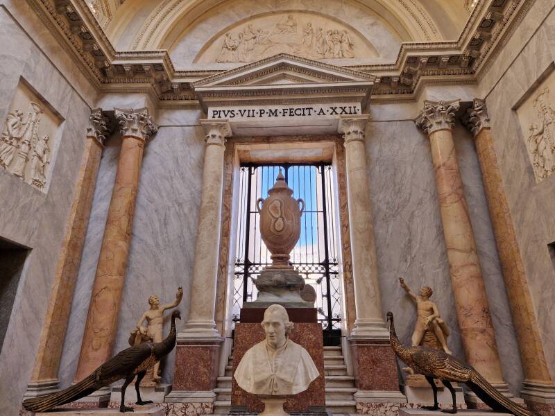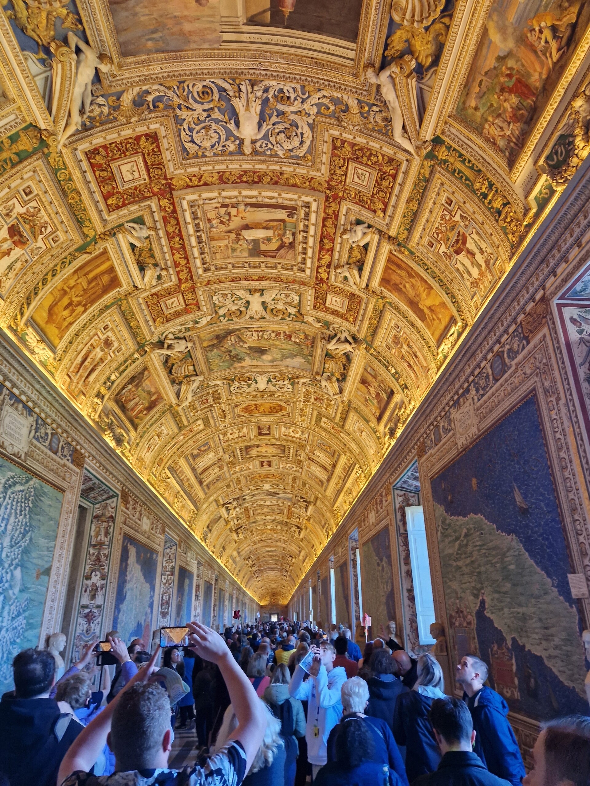 Dat het druk is, is zeker in de lange, indrukwekkende gang met beelden en een prachtig deels met goud ingelegd plafond, wel een understatement. Toch is de drukte niet vervelend en past iedereen zich hier automatisch wel aan.