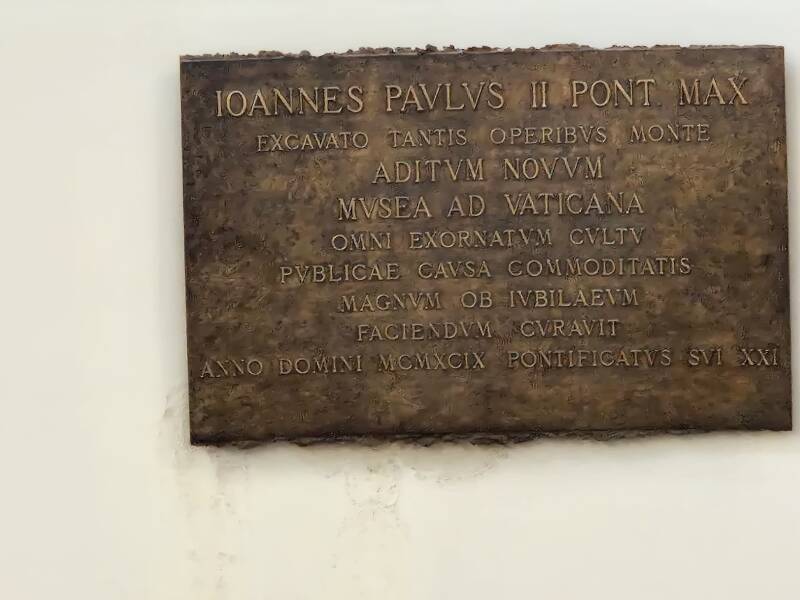 Zodra we op het Sint-Pietersplein oplopen, zien we direct al dat alles gereed gemaakt wordt voor het 'urbi et orbi' van de Paus dit weekend. Nadat we langs de stadsmuren zijn gelopen, gaan we verder richting de Sint-Pietersbasiliek.